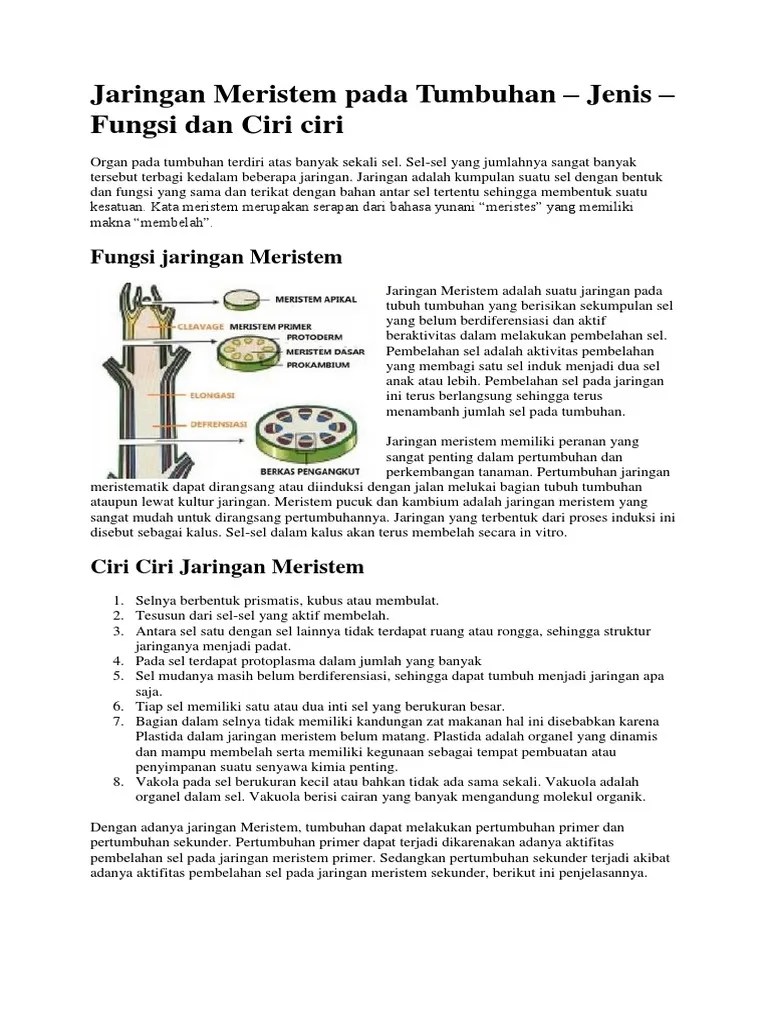 Fungsi Meristem Apikal / Struktur Dan Fungsi Jaringan Tumbuhan Ipa Kelas 8 Maglearning Id / Jaringan meristem adalah salah satu dari 5 jaringan penyusun tumbuhan selain jaringan epidermis, jaringan parenkim, jaringan penguat, dan jaringan pengangkutan.. Jaringan yang terbentuk dari meristem apikal disebut jaringan primer. Jaringan meristem yang terletak diantara jaringan meristem apikal dan dewasa. Pertumbuhan memanjang akibat aktivitas meristem apikal disebut pertumbuhan primer. meristem apikal memungkinkan tanaman untuk mengembangkan struktur khusus seperti bunga dan daun. Jaringan meristem yang terdapat pada ujung akar, ujung batang, pucuk tunas yang aktivitas pembelahannya akan mengakibatkan perpanjangan akar dan batang/disebut juga pertumbuhan primer.
