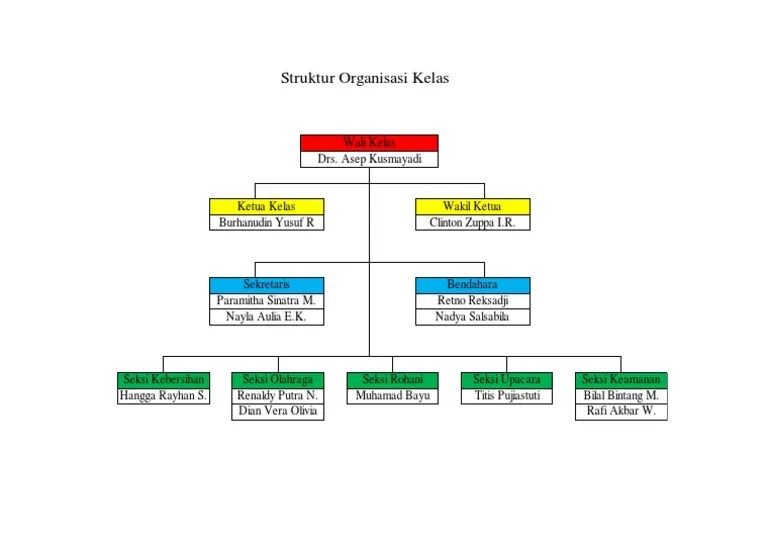 Bagan yang disambungan dengan garis hubung merupakan ciri khas tampilan struktur organisasi kelas yang selama ini terpampang jelas pada tiap kelas. Kenaikan kelas vii dan viii smp negeri 4 denpasar tahun pelajaran 2020/2021. Nih panduan lengkap cara membuat struktur organisasi kelas yang menarik di microsoft word hingga siap cetak. Ketua kelas ( km ) · 2. Struktur organisasi kelas anak sd sekarang memang keren!